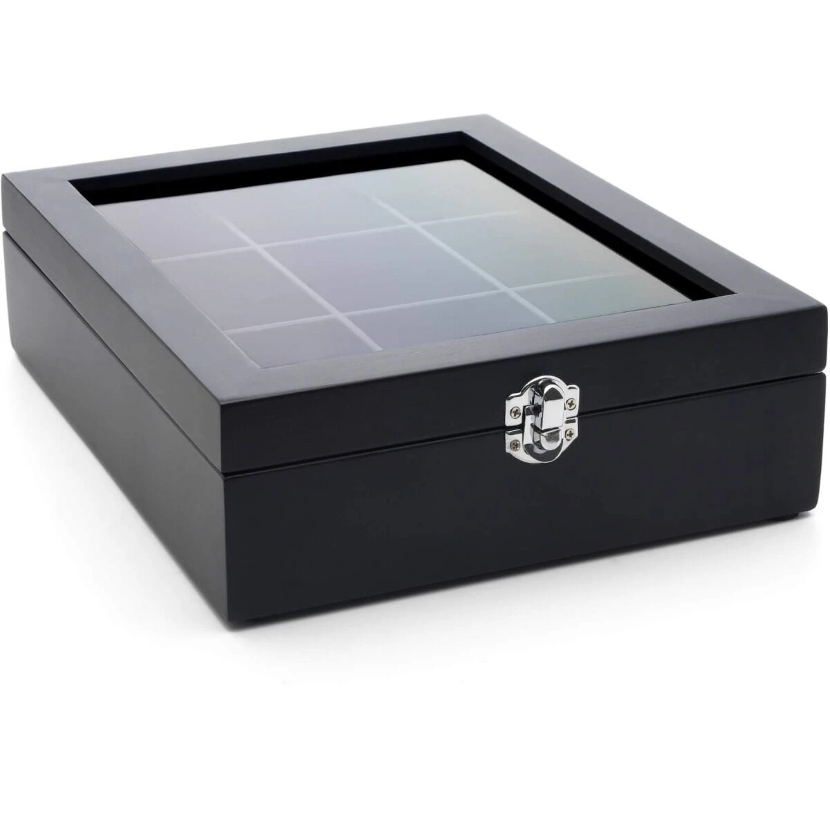 De theedoos van Bredemeijer is gemaakt van zwart gekleurd hout en voorzien van een glazen venster in het deksel. De kist heeft een afmeting van 28 x 22 x 7 cm (l x b x h). De kist heeft 9 vakken voor het opbergen van theezakjes.
