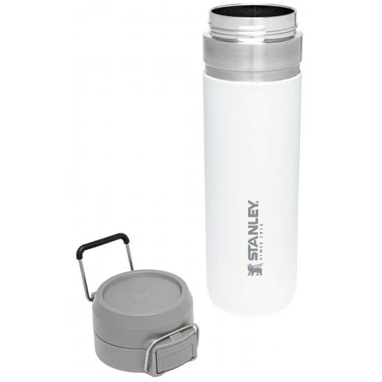 De Stanley The Quick Flip Water Bottle is vervaardigd uit dubbelwandig roestvrij staal, waardoor de inhoud van de waterfles een lange tijd koel blijft. De fles sluit volledig lekvrij af en kan daardoor probleemloos horizontaal worden meegenomen.